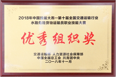 2018年中國(guó)技能大賽——第十屆全國(guó)交通運(yùn)輸行業(yè)水路危險(xiǎn)貨物運(yùn)輸員職業(yè)技能大賽秀組織獎(jiǎng)