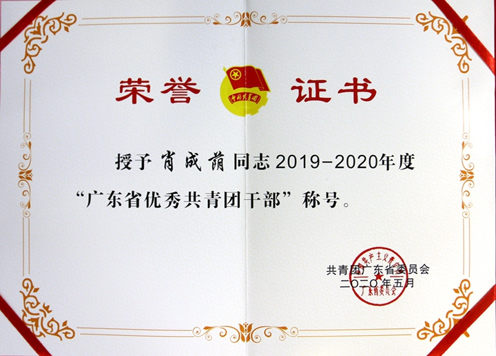 “廣東省優(yōu)秀共青團(tuán)干部”榮譽稱號