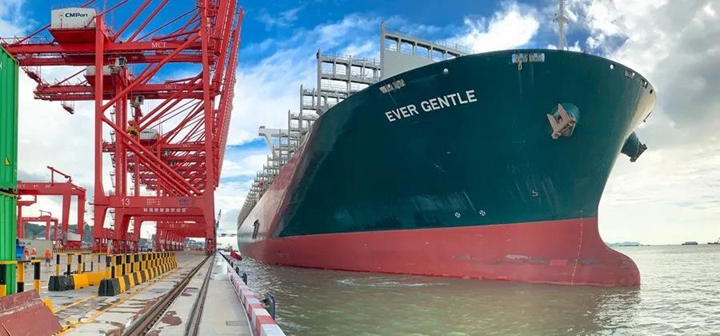 9月30日,長榮海運(yùn)20萬噸級(jí)集裝箱船“長雅輪”順利靠泊SCT港區(qū)5#泊位,該船總長400米、型深32.9米、型寬58.8米,滿載吃水16.02米,最大載重噸198,886噸,最多可裝載20,388個(gè)標(biāo)準(zhǔn)集裝箱,一舉刷新SCT港區(qū)接靠最大船長、最大載重噸、最大載箱量集裝箱船三項(xiàng)紀(jì)錄。該船同時(shí)靠泊媽灣智慧港,一并刷新媽灣智慧港3號(hào)泊位交工驗(yàn)收以來最大噸級(jí)船舶靠泊紀(jì)錄,進(jìn)一步證明媽灣智慧港完全具備20萬噸級(jí)超大型集裝箱船靠泊的能力。