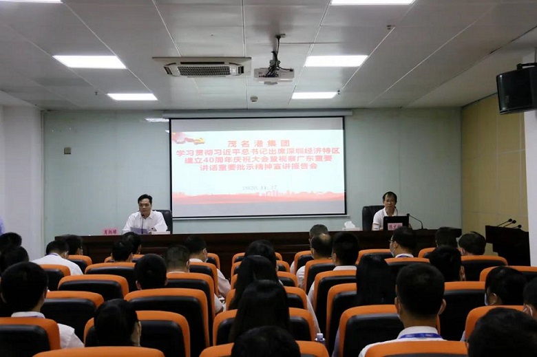 11月27日上午,茂名港集團(tuán)舉辦學(xué)習(xí)貫徹習(xí)近平總書記出席深圳經(jīng)濟(jì)特區(qū)建立40周年慶祝大會(huì)和視察廣東重要講話、重要指示精神宣講報(bào)告會(huì)。報(bào)告會(huì)邀請茂名市委宣講團(tuán)成員、市社科聯(lián)專職副主席陳文欽到會(huì)作了題為《以更大魄力在更高起點(diǎn)上推進(jìn)改革開放》的宣講報(bào)告。集團(tuán)黨委書記、董事長劉乃英、集團(tuán)黨委副書記肖炳璋和集團(tuán)機(jī)關(guān)各部室、各下屬企業(yè)黨員干部近90人參加了宣講會(huì)。