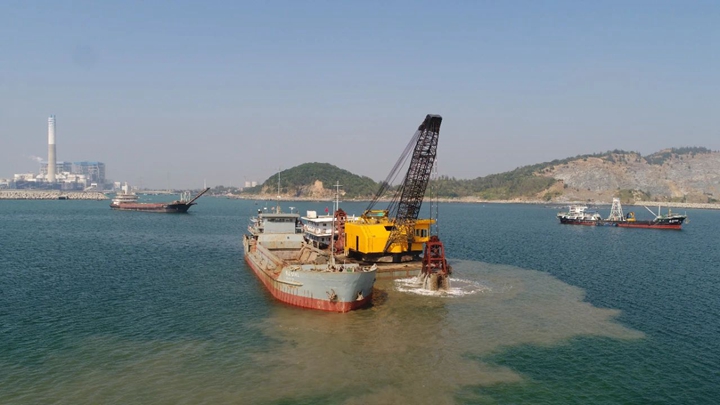 鳥瞰茂名港務(wù)中心施工現(xiàn)場