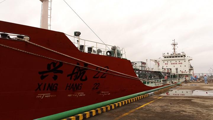 8月11日上午9時(shí)30分,裝載有9980噸柴油的“興航22”油輪在碼頭操作人員的精準(zhǔn)引領(lǐng)下順利靠泊中油王港公司碼頭1號(hào)泊位,創(chuàng)造了中油王港公司靠泊油輪噸位新記錄!