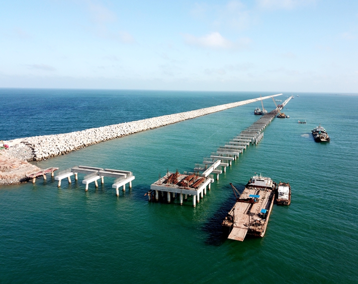 目前,集團(tuán)已成立4個(gè)項(xiàng)目臨時(shí)黨支部。各臨時(shí)黨支部積極組織勞動(dòng)競(jìng)賽、項(xiàng)目大干第三季度等活動(dòng),充分發(fā)揮戰(zhàn)斗堡壘作用,以“紅色引擎”推動(dòng)項(xiàng)目高效建設(shè)。其中:東區(qū)油品碼頭項(xiàng)目各分項(xiàng)工程取得顯著成效,陸域管廊工程基本完工,碼頭沉箱開始安裝,管架及水域橫梁快速推進(jìn)。東區(qū)化工碼頭項(xiàng)目港池疏浚及基槽挖泥基本完成;基床拋石累計(jì)完成設(shè)計(jì)總量的51%;沉箱預(yù)制累計(jì)完成設(shè)計(jì)總量的35%,沉箱安裝累計(jì)完成設(shè)計(jì)總量的10%;箱內(nèi)回填開始施工。東區(qū)化工倉(cāng)儲(chǔ)項(xiàng)目土石方累計(jì)完成設(shè)計(jì)總量的68%,擋土墻累計(jì)完成設(shè)計(jì)總量的52%,化工罐組基礎(chǔ)、油品罐組基礎(chǔ)、庫(kù)區(qū)道路、地管、總變電所及消防控制室等分項(xiàng)工程正在同步實(shí)施。茂名港務(wù)中心項(xiàng)目目前地下室已施工完成,正式轉(zhuǎn)戰(zhàn)地面工程,首層主體工程正在施工。