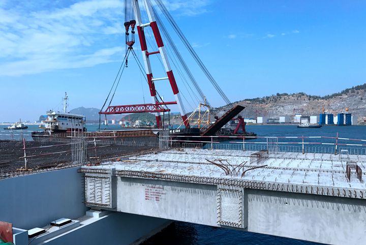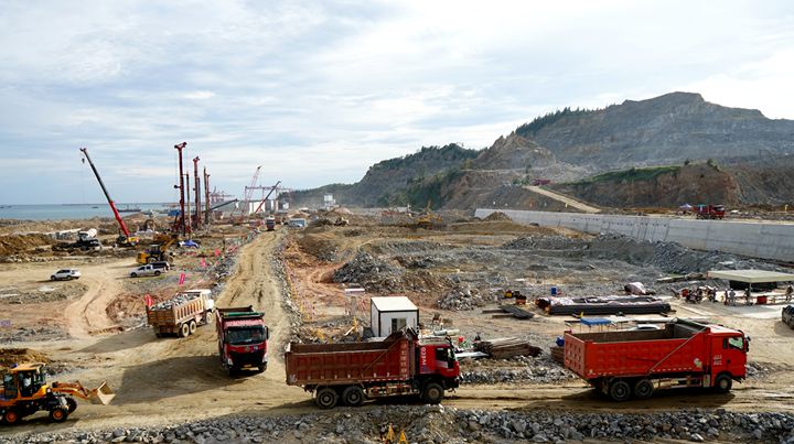博賀新港區(qū)建設(shè)現(xiàn)場往來工程車輛川流不息,工地人員各司其職,各項(xiàng)工序有條不紊,處處展現(xiàn)出一派熱火朝天的建設(shè)景象。