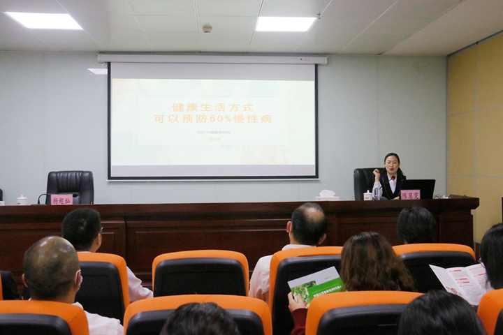 為踐行習(xí)近平總書記關(guān)于健康中國的重要論述,根據(jù)市衛(wèi)生健康局通知精神,結(jié)合集團(tuán)職工健康文化月活動(dòng)安排,12月16日,集團(tuán)工會(huì)邀請(qǐng)茂名市健康教育所副所長陳慧雯到集團(tuán)開展“好心茂名,健康大課堂”健康科普講座。集團(tuán)黨委委員、副總裁、工會(huì)主席楊超燦,集團(tuán)機(jī)關(guān)各部室、下屬企業(yè)共60余名干部職工參加了講座。