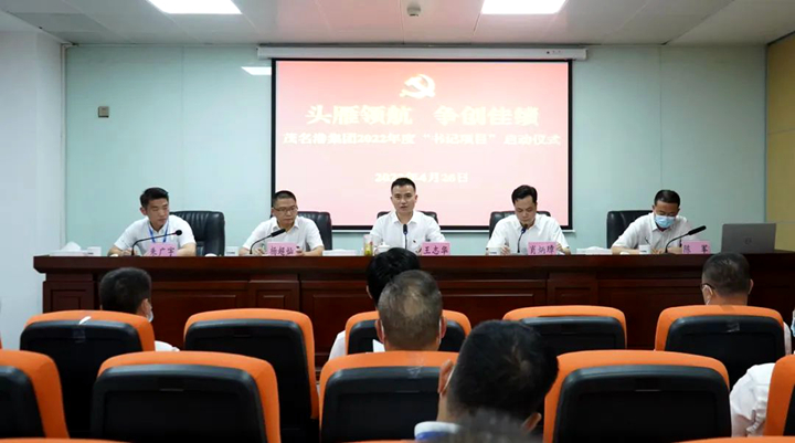 | 4月26日下午,茂名港集團舉行2022年度“書記項目”啟動儀式,集團黨委書記、董事長王志華出席會議并講話,黨委副書記、總裁肖炳璋主持會議,黨委委員、副總裁楊超燦,黨委委員、紀委書記、監(jiān)察專員陳軍,副總裁朱廣宇出席會議。