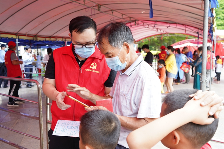 “這個碼掃不出來,始終進不去,能不能幫我們調(diào)適一下?”“我年紀(jì)大了,不會操作智能手機,能不能幫幫我呀?”……面對群眾提出各種各樣的問題和需求,黨員志愿者一一耐心解答,以細致的服務(wù)深入踐行“我為群眾辦實事”,主動為老人、兒童等群眾提供貼心服務(wù)。遇到行動不便的群眾,隊員們主動上前,全程陪同他們完成信息采集、核酸檢測,構(gòu)建了企業(yè)單位與社區(qū)黨員共同抗疫、服務(wù)群眾的戰(zhàn)斗堡壘。