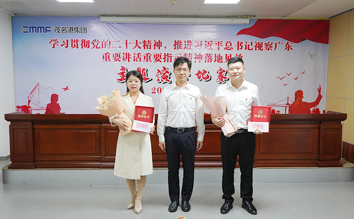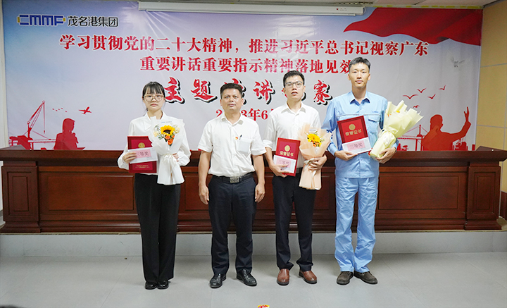 6月27日,茂名港集團舉行“學習貫徹黨的二十大精神,推進習近平總書記視察廣東重要講話重要指示精神落地見效”主題演講比賽決賽。集團黨委副書記、總裁肖炳璋,副總裁李昱祺出席活動,并為獲獎選手頒發(fā)了榮譽證書。