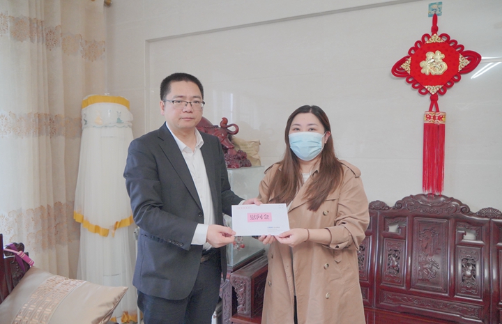 集團(tuán)黨委委員、副總裁楊超燦帶隊(duì)到患病職工鄧嬋的家中進(jìn)行慰問。期間與鄧嬋進(jìn)行了親切的交談,詢問了她術(shù)后的身體情況、恢復(fù)進(jìn)展,鼓勵(lì)她要樹立信心、保持樂觀向上的陽光心態(tài),囑咐她安心養(yǎng)病,并祝愿她早日康復(fù)!