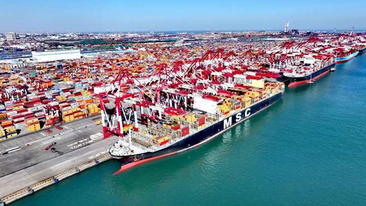 在建成全國首座全國產(chǎn)全自主自動化碼頭基礎(chǔ)上,青島港加速智慧港口迭代升級,推動人工智能應(yīng)用中試基地成果轉(zhuǎn)化。今年以來,持續(xù)優(yōu)化、推廣自主研發(fā)的A-TOS(碼頭智能管控系統(tǒng)),13次刷新自動化碼頭裝卸效率世界紀(jì)錄;推進傳統(tǒng)碼頭自動化改造,通過研發(fā)碼頭智能體、攻關(guān)自動化裝卸關(guān)鍵技術(shù),實現(xiàn)全場景、全流程、全機種自動化,助力集裝箱、紙漿、鐵礦石、糧食等貨種接連打破效率紀(jì)錄;打造“云港通”口岸線上服務(wù)平臺,實現(xiàn)“關(guān)港通”智慧查驗,應(yīng)用全球首個港口服務(wù)大模型方舟TaaS,進一步提升了裝卸作業(yè)的服務(wù)體驗和決策效率。 智慧港口效率的提升離不開海關(guān)監(jiān)管服務(wù)的升級保障。青島海關(guān)充分發(fā)揮山東港口青島港在‘一帶一路’中的陸;ヂ(lián)優(yōu)勢,推廣“先期機檢”“抵港直裝”“船邊直提”等自動化作業(yè)模式,通過升級升級智能空軌、集裝箱順勢核重等智能化設(shè)施設(shè)備,將海關(guān)監(jiān)管無縫嵌入港口生產(chǎn)作業(yè),實現(xiàn)了海關(guān)與港口物流信息交互,為外貿(mào)企業(yè)打造了一條綠色、高效的出海物流通道。