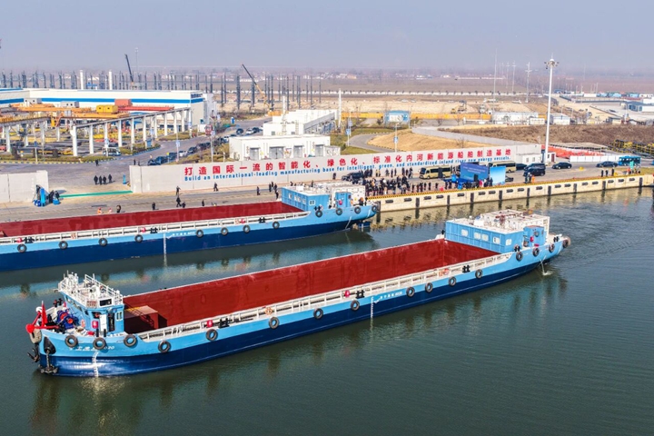 本次儀式交付的首批5艘純電動貨船及新簽訂的50艘訂單船舶,將全部投入京杭運河流域,構(gòu)成山東省首條實現(xiàn)常態(tài)化、規(guī)模化運輸?shù)募冸妱迂洿G色航線,覆蓋長三角至華北核心物流通道,單船年運力預(yù)計突破50萬噸。 山東新能船業(yè)有限公司董事長張強介紹,該船隊創(chuàng)新應(yīng)用“船電分離”商業(yè)模式及集裝箱式換電技術(shù),單船載貨量達2000噸,一次換電即可滿足核心運輸需求,全程實現(xiàn)零排放、低噪音運行。據(jù)測算,僅此批船舶全年即可減排二氧化碳超1300噸,環(huán)保效益斐然。 “此次交付的5艘多用途電船,搭載高容量箱式電源系統(tǒng),配套高壓大功率充換電設(shè)施,可實現(xiàn)15分鐘快速換電、270公里長效續(xù)航,成功構(gòu)建‘船-站-云’一體化商業(yè)閉環(huán)!睂幍聲r代決策顧問委員會副主任曾嶸表示。 濟寧能源集團黨委書記、董事長張廣宇說,新能船業(yè)是濟寧能源集團聯(lián)合寧德時代、中集集團、中船集團、武漢理工大學(xué)等共同打造的新能源船舶制造項目,可研發(fā)、設(shè)計、生產(chǎn)滿足不同應(yīng)用場景需求的內(nèi)河標準化船舶系列產(chǎn)品。截至目前累計簽約訂單180余艘,2025年下水船舶100艘、交付80艘。與法國達飛等企業(yè)合作建造的7艘新能源船成功出口至越南、坦桑尼亞、古巴、贊比亞等國家。